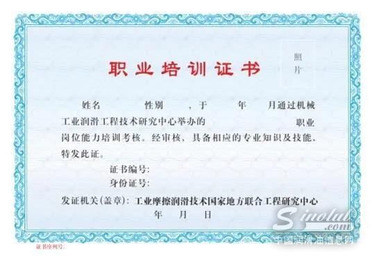 向中国企业润滑行业人员提供职业资格认证考试