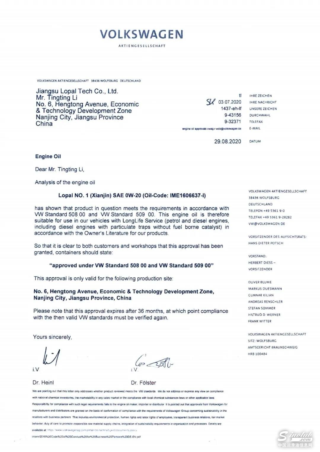 龙蟠1号全合成润滑油系列,均获得最新API SP认证,作为中国自主润滑油品牌中的“认证达人”,同时符合奔驰、宝马、大众等诸多OEM认证标准。其中有多款产品分别符合ACEA C5、ACEA C3等欧洲认证标准。
