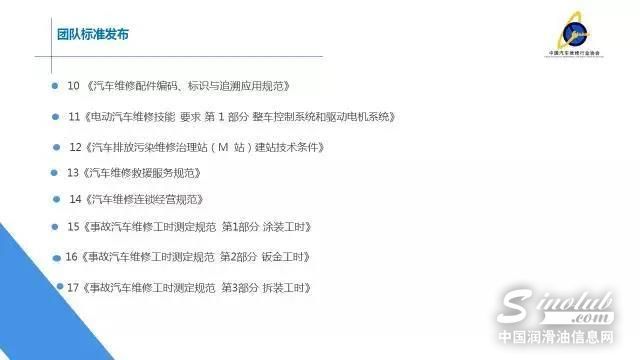 面对复杂多变的形势和新的挑战,为探索新市场环境下汽车维修行业发展的方向和未来、构建行业新秩序、保护消费者合法权益、携手共建健康有序的汽车后市场营商环境,中机寰宇认证检验有限公司(中汽认证中心有限公司)紧密支撑中国汽车维修行业协会的标准制定工作,联合业内知名专家、企业组织制定了《汽车维修配件认证管理规范》《汽车覆盖件(塑料件)技术规范第1部分:通用技术要求》《汽车覆盖件(塑料件)技术规范第2部分:底漆和装饰涂层》《汽车覆盖件(塑料件)技术规范第3部分:紧固件和五金附件》《汽车维修连锁经营规范》《汽车维修救援服务规范》《汽车维修配件编码、表示与追溯应用规范》《电动汽车维修技能要求第1部分:整车控制系统和驱动电机系统》《》等17项团体标准,并启动《汽车照明及光信号装置技术规范》、《机动车维修行业企业信用评价规范》等8项团体标准制定工作,已发布的标准现已全部交由人民交通出版社正式出版发行,最大限度地发挥了团体标准在行业发展中的重要作用。
