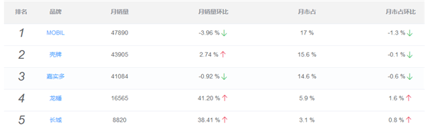 9月份,天猫平台共计卖了28.2万桶机油,环比上涨3.5%;销售额4871.6万元,环比上涨8.6%;京东当月共计卖了24.7万桶机油,环比上涨8.9%,紧追天猫平台;9月份,京东平台机油销售额5253.3万,环比增涨14.7%。从长城润滑油的线上市场销售看,得益于“618”相关活动推广,其6月份在天猫平台汽机油品类的市场占有率创下新高。
