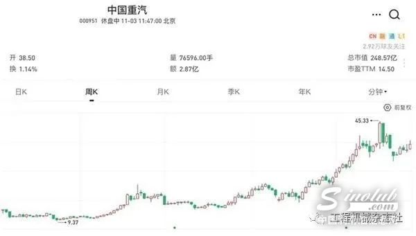 中国重汽股价周线图