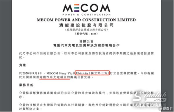 而2020年9月15日,Ubitricity已与其在中国唯一合作方——港股公司建立合营公司,当时共同制定的目标是在未来几年,在港澳大湾区设置5000-10000个充电点,其已于2020年10月-2021年1月,已经分别获得澳门、香港,以及中山的充电桩项目。