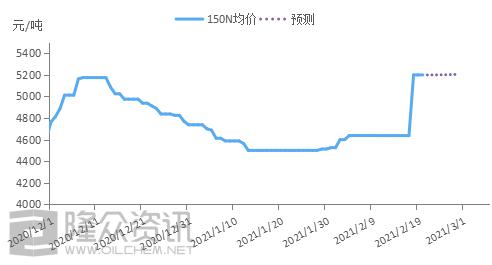 白油:本轮价格上涨主要受国际原油价格连续推涨刺激, 5#工业白油价格较节前上涨2.38%,因对节后市场看涨,月底仍有上涨趋势,隆众预计到月底国内5#工业白油市场均价为4400元/吨,涨幅为4.76%。
