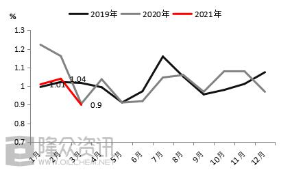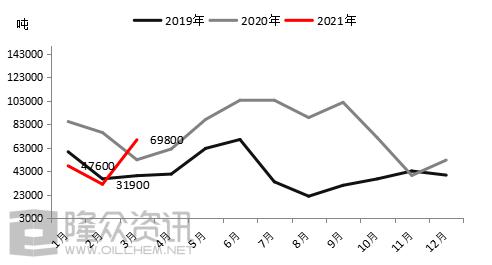 图1:2021年3月基础油市场产量、销售、库存数据变化分析