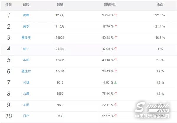 天猫三月汽机油销量TOP10品牌