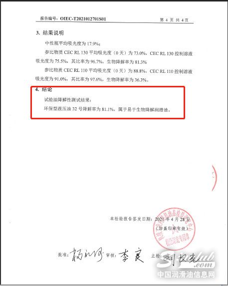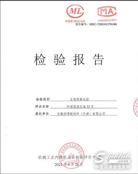 秉持母公司龙蟠科技的绿色环保经营理念,龙蟠润滑新材料(天津)有限公司勇担行业发展先锋,率先推出更符合生态友好趋势的可生物降解型液压油,其降解性和无毒性已获得权威机构——天津大学机械工业内燃机油品检验评定中心的试验认证。