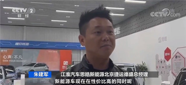 江淮汽车思皓新能源北京捷运德盛总经理 朱建军:新能源车在性价比高的同时,在智能化的一些体验和操作上,比传统燃油车来说优势很大。