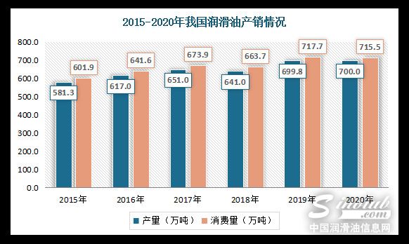 近年来,随着我国经济的增长,润滑油市场也随之火热,庞大的消费市场为国内润滑油企业发展壮大提供了空间和动力。到目前我国已成为全球第二大润滑油生产和消费市场。数据显示,2020年,我国润滑油消费量为610万吨,产量约为780万吨。