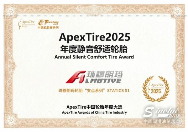 此次在荣获“ApexTire2025年度静音舒适轮胎”奖,不仅为珠穆朗玛轮胎的品牌发展史增添了浓墨重彩的一笔,也为正在经历转型升级的中国轮胎行业树立了品质标杆。