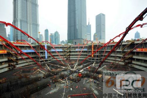 据悉,除了完成底板浇注,三一的泵送设备还将承担大楼主体工程地泵送施工。届时,由三一首创的“泵送多高,水洗多高”的超高层泵送管路水洗方法将运用于上海中心。而这将有力减少传统超高层泵送管路清洗技术中,混凝土对施工环境的污染。