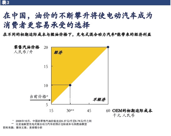 中国劳动力丰富,成本低廉;中国的汽车市场增长迅速,可在生产中实现规模经济效应;中国政府决心摆脱对进口石油的依赖,净化生态环境,并已给予了明确支持;所有这些都使中国可以在将电动汽车从一种昂贵的特有技术转变为应用广泛,可被大众接受技术的过程中成为先驱.当然,这也取决于政府的政策如何受奏效,行业的动态如何发展,但无论如何,中国正面临着重塑全球汽车行业的独特机遇,承载着消费者的巨大经济和社会效益.