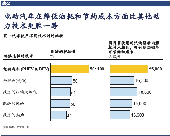 我们最近对几种可替代能源动力汽车技术展开了全球范围的研究,从诸多方面与传统的内燃机(ICE)进行了对比,包括汽车购买养护的整体成本,降低温室气体排放的空间,以及对进口燃料的节省程度(参见"关于研究项目").中国汽车制造商可以生产的诸多可替代能源汽车中——电动汽车,包括充电式混合电动汽车(PHEV),和电池电动汽车(BEV);全混合动力汽车;压缩天然气(CNG)机车和改良型汽柴油内燃机动力汽车——电动汽车由于可以全面解决一些重大问题,如成本,能源消耗,环境影响等脱颖而出.