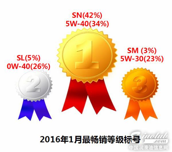 2016年1月份的机油畅销等级排行榜整体趋势保持稳定。高等级、高品质的机油在电商销售市场中,依旧占据绝对优势,备受广大车主的信赖和喜爱。润滑油最高等级SN名列前茅,占据市场42%的高销售量。此外,在机油标号方面,“5W-40”本月达到了34%的份额,领先于“0W-40”的26%,继续蝉联2016年1月份的标号冠军。同时,标号“5W-30”的机油在低温条件下的冷车启动的保护性好,在冬季备受青睐,销售量逐步攀升,势头不容小觑,本月获得了23%的市场份额。机油猫提醒车主,从实际用车需求来看,建议车主选择多个级别的机油,用以满足从低温到高温的广泛区域,适应温度的变化给予发动机更为全面的保护。
