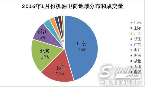 “北上广”作为领军角色,本月份依旧引领机油电商继续前行。广东销量独占机油电商市场近半壁江山。此外,浙江、山东、江苏等地也有了较好的发展,跻身于电商地域销售排行榜的前列。除偏远地域,2016年1月份全国各省市的电商机油店铺数量继续呈现出百花齐放的良好态势。