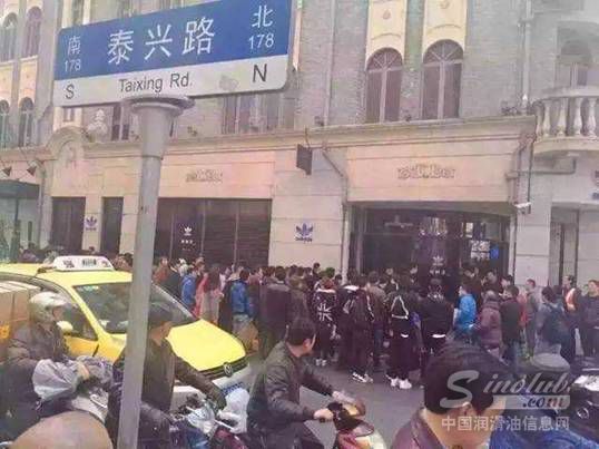 这墙上的logo怎么那么像卖鞋的阿迪达斯?真相是3月17日上午,一款名为NMD的阿迪达斯新配色球鞋全新上市,粉丝、黄牛齐齐出动,所以出现了大街上人头攒动的景象。这鞋子原价1099的,被炒到十万一双!标题说好的“一瓶润滑油能卖一万”去哪了?