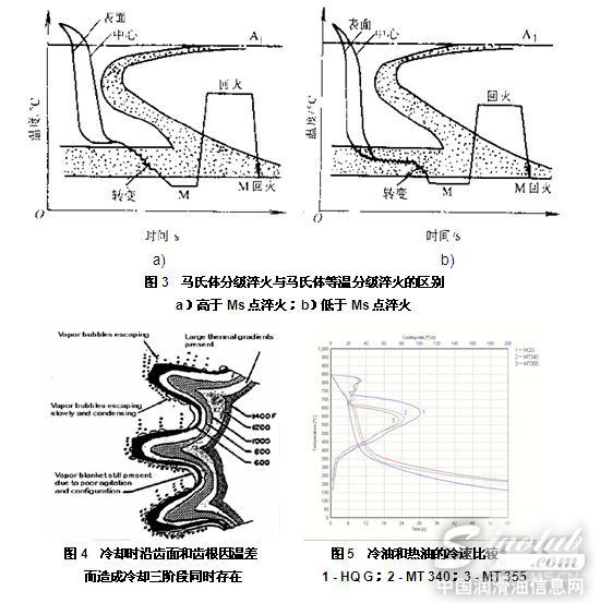 马氏体等温分级淬火油的冷速比快速淬火油要低一些(图5),但闪点和粘度一般都比冷油高,因此使用温度也就相应的高得多。
