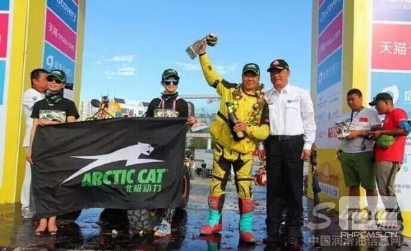 7月2日新疆讯,经过近半个月数千公里的越野征途,2015中国环塔(国际)拉力赛在新疆北屯圆满收官,最终100辆汽车、16辆摩托车顺利完赛。美国突破(TOP1)润滑油极限测试合作伙伴北极猫车队胡爱东毫无悬念拿下ATV组总冠军,李亚涛、张行涛,双涛组合斩获T3(UTV)组亚军。