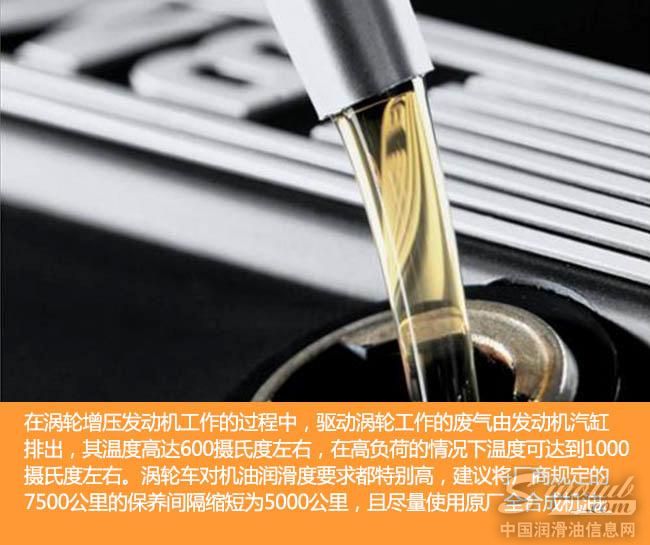 一般涡轮增压器在发动机转速达3500转/分钟时才会启动,并且快速提升直到6000转/分钟。而发动机转速越高,要求机油的抗剪切能力越强。只有这样,才能使得在高转速下机油的润滑能力不下降。因此,在选择机油时,应选择优质机油,比如高档全合成机油等。