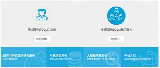 为品牌找靠谱代工,为代工找靠谱品牌!“油云”是中国首创的润滑油OEM资源查询系统和混合式对接平台。在有关权威机构和知名专家的支持指导下,项目通过基于SaaS模式的云服务平台,以移动互联网和先进的大数据挖掘技术为支持,整合润滑油OEM企业供需信息、加工装置产能数据,润滑油供应链各主体可利用系统提供的服务模块连接各自的业务管理信息系统,管理其业务流程,实现业务数据交互,有效支持润滑油OEM信息化的发展,合理配置资源,为润滑油品牌商和代工厂提供线上对接线下交易服务。