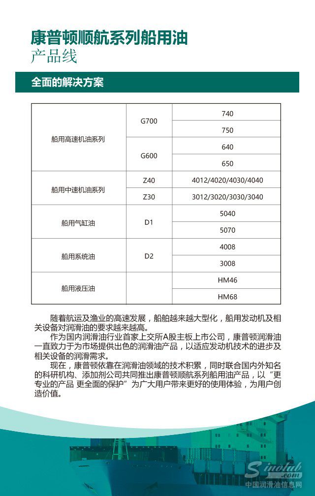 现在,康普顿依靠在润滑油领域的技术积累,同时联合国内外知名的科研机构、添加剂公司共同推出康普顿顺航系列船用油产品,以“更专业的产品 更全面的保护”为广大用户带来更佳的使用体验,为用户创造价值。