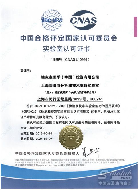 近日,位于埃克森美孚亚太润滑科技中心内的上海润滑油分析和技术支持实验室正式通过CNAS(中国合格评定国家认可委员会)评定,获得ISO17025认可,成为外资润滑油企业中,首家在中国获得此项认可的润滑油实验室。