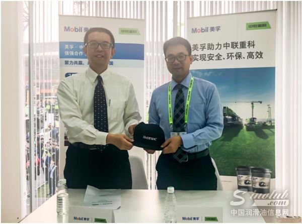 埃克森美孚亚太润滑科技中心经理蒋智亮先生(左)与中联重科股份有限公司中央研究院任会礼博士(右)