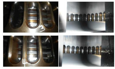 埃克森美孚工程师对发动机进行了全面的检查,发现汽缸套壁存在大面积黑斑,Wärtsilä PLS汽缸油注油率设定值也处于较高水平,约为1.2-1.3g/kWh[1]。结合美孚®优释达®油品分析服务对汽缸残油的样本分析,埃克森美孚工程师建议南京金希普换用碱值更高的美孚佳特™5100 汽缸油,同时结合实施美孚®优释达®汽缸状态监控服务逐步下调注油率,并且对低温腐蚀的问题作出密切跟踪和评估。