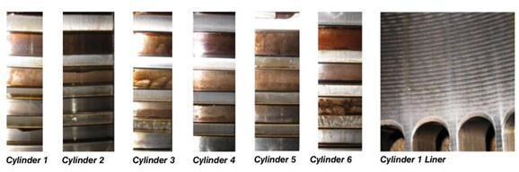 经过 8,000 小时运行后,嘉润轮注油率成功下调至0.59g/kWh5,活塞、活塞环和缸套表面清洁,均处于良好运行状态