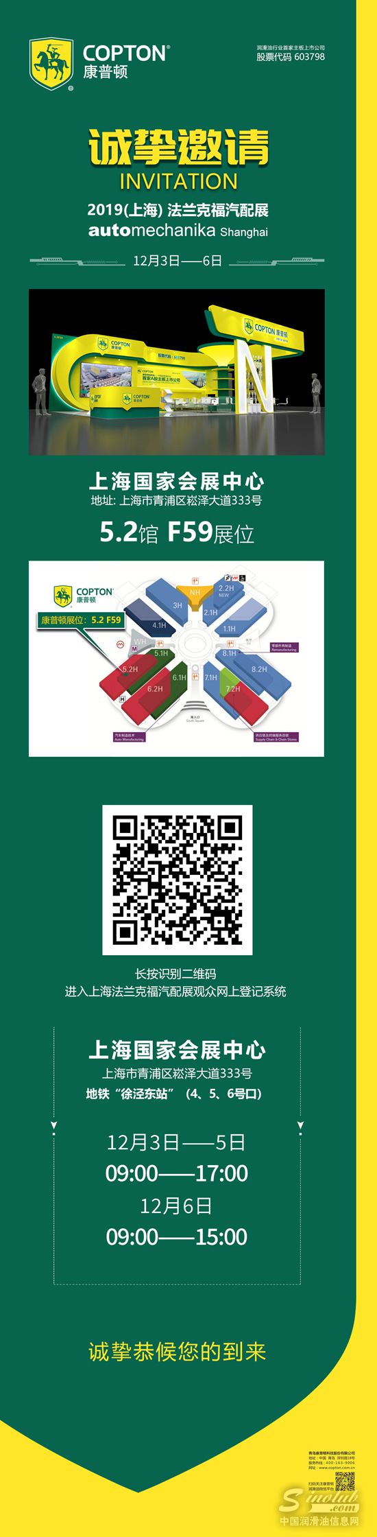 12月3日-6日,2019上海法兰克福汽配展将在上海国家会展中心举办。作为规模仅次于德国法兰克福母展的全球第二大汽车零配件品牌盛会,本届上海法展汇聚5,300多家海内外品牌企业和超过100,000名专业买家共襄盛举。作为润滑油行业首家A股主板上市公司,康普顿旗下车用润滑油、工业润滑油、车用尿素全系主打产品强势亮相本届上海法展(5.2馆F59展位),同时将在会上推出一款顶端汽机油新品,并在上海虹桥交通枢纽投放品牌宣传资源,向行业展示自信、创新、优质、高端的康普顿品牌形象。