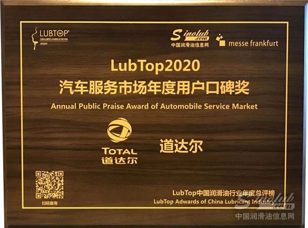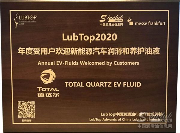 近日,以“大变局 智未来”为主题的LubTop2020中国润滑油行业年度总评榜暨汽车后市场卓越者评选活动在北京隆重张榜。道达尔润滑油凭借在市场表现、技术创新、用户满意度、行业影响力方面的突出表现,荣获LubTop2020 “中国润滑油十大品牌”、“汽车服务市场年度用户口碑奖”、“年度受用户欢迎新能源汽车润滑和养护油液”殊荣。