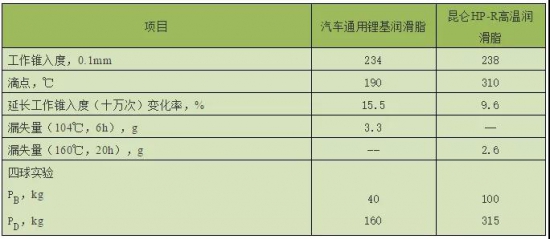一是优异的耐高温性能,确保车辆在重载、山区下坡连续刹车制动等苛刻条件下,最高使用温度满足130~150℃的要求,润滑脂滴点多在290°C上下。