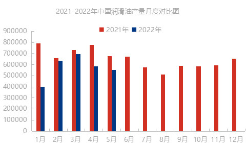 据数据显示,2022年1-5月份润滑油总产量287万吨,同比下滑21%。下游订单量减少幅度较大。主要原因分析如下:各原材料价格上涨的速度与润滑油终端需求并不成比例增加,原料价格不断推涨,而终端用油需求低迷,加之公共安全事件导致部分地区停工停产,最终导致成品润滑油价格调价难以落地,调到一定高位后,终端采购能力下降,订单量锐减。从调研50家润滑油工厂得知,不同润滑油工厂的订单量同比下滑30-50%左右。