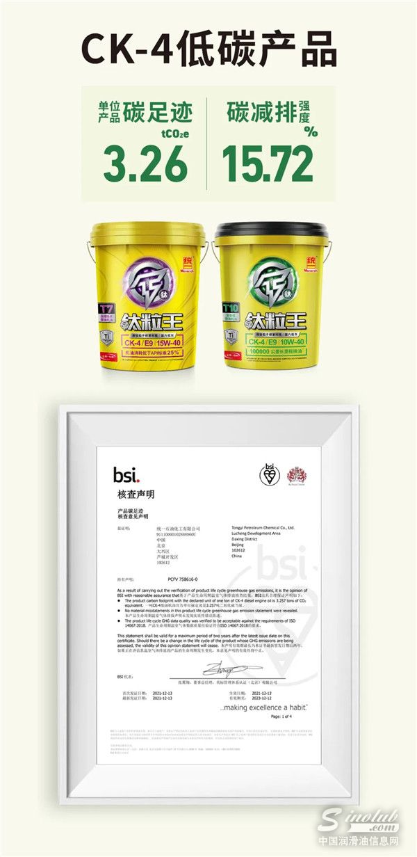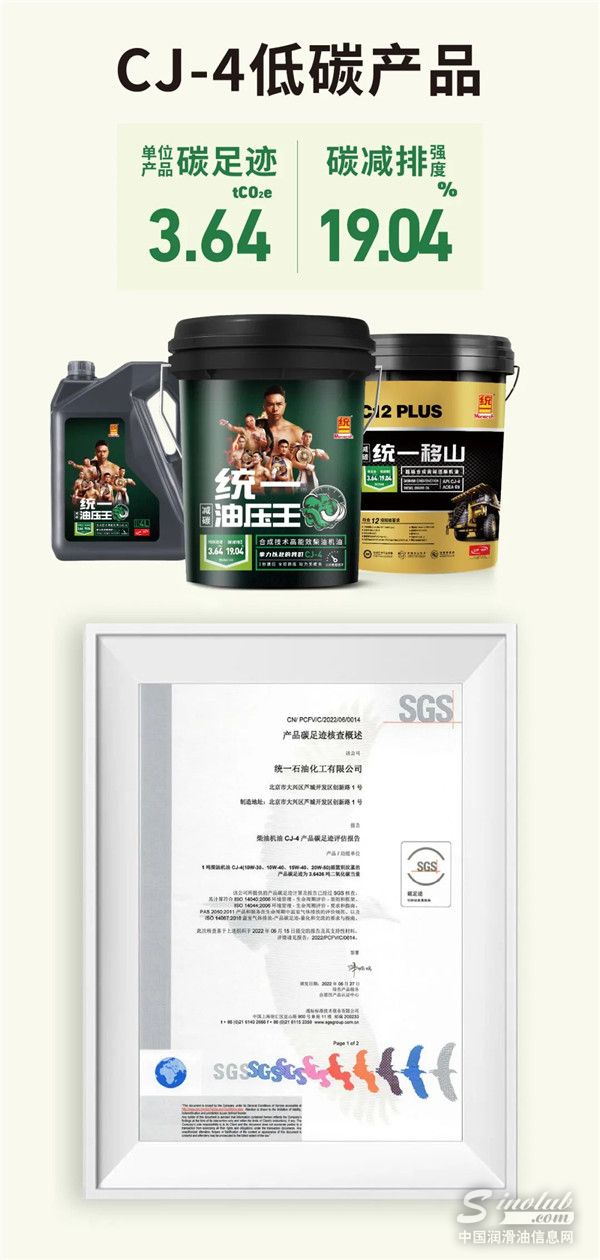 在交通运输领域,CK-4、CJ-4、CI-4、CH-4、SN、SP等主流级别,统一均推出了全新的低碳润滑油产品;全新的低碳锂基脂、柴油添加剂、GL-5车用齿轮油等产品也在提升品质的同时,具备高减碳值。