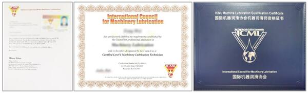 由机械工业润滑工程技术研究中心颁发的《职业培训证书》,既是能力的证明,又是国际 ICML/MLT I 考试的课时证明。
