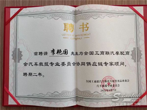 近日,全国工商联汽车摩托车配件用品业商会在河北省唐山市南湖国际会展中心召开“汽车救援专业委员会成立大会”。全国工商联执委/全国工商联汽摩配商会会长王茂新、商会常务副会长/党支部书记李宝民等领导出席本次会议。会上,圣保路石油化工(天津)股份有限公司被正式任命为汽车救援专业委员会副会长单位。
