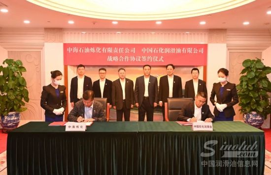 10月27日,中国石化润滑油有限公司与中海石油炼化有限责任公司开展了战略合作签约仪式暨深度融合发展座谈会。中国石油化工集团有限公司党组成员、副总经理、股份公司高级副总裁凌逸群,中国石化润滑油有限公司党委书记、董事长夏世祥,中国海洋石油集团有限公司党组成员、副总经理兼中海炼化党委书记、董事长周立伟等出席签约仪式并见证签约;中石化润滑油总经理张春辉与中海炼化总经理王维民代表双方签约。
