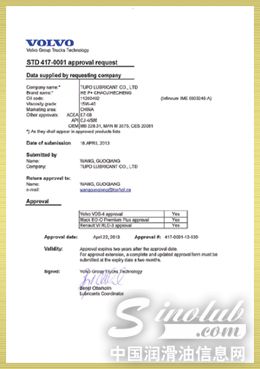 2013年04月22日 突破润滑油HE P+超级合成机油满足沃尔沃,马克和雷诺用油规格并已获得沃尔沃认证。此证书同时满足以下OEM的用油标 [详情]
