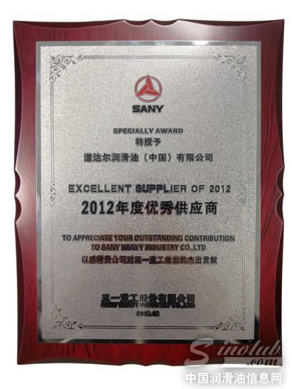 [7th Dec, 2012] 三一重机2012年度供应商大会于日前隆重召开,道达尔润滑油(中国)有限公司被评为"三一重机2012年度优秀供应商"。 [详情]