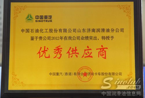 中国石化润滑油济南分公司在中国重汽2012年度优秀供应商评选活动中,凭借优异的产品质量、快速周到的产品交付和完美的售后服务等,从50 [详情]