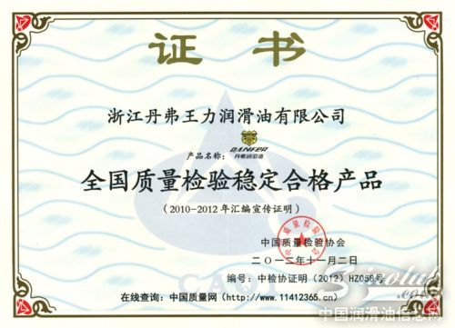近日,浙江丹弗王力润滑油有限公司收到中国质量检验协会通知,自2010-2012年期间近三年的产品质量监督抽查中及2010年前的检查记录中, [详情]
