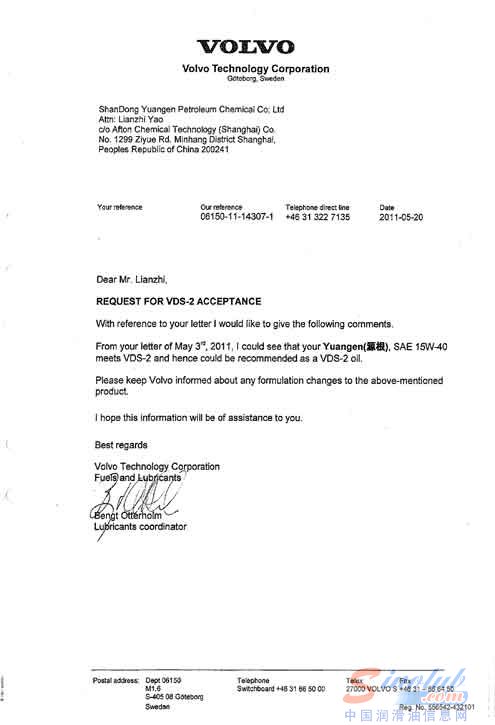 近日,山东源根石油化工有限公司收到沃尔沃集团发来的通知,宣布源根石化公司发动机油正式通过沃尔沃集团的VDS-2质量认证,证明源根石 [详情]