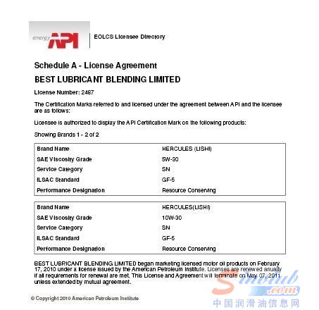近日,由凌志润滑油有限公司研发生产的力士节能机油系列产品通过了API SN GF-5认证。SN质量等级是美国石油学会最新制订的一个机油质量 [详情]
