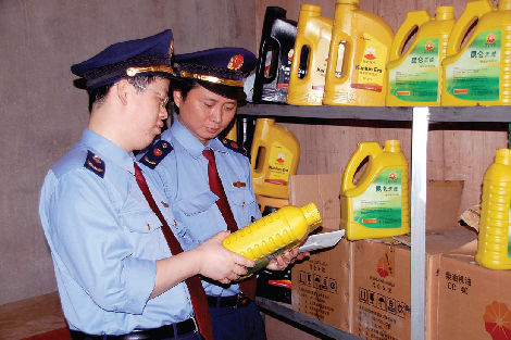 此“昆仑天原”牌润滑油非彼“昆仑”牌润滑油。昨日,在安吉大道延长线西津村路口一家汽车修理厂内,南宁市西乡塘工商分局执法人员当场...[详情]