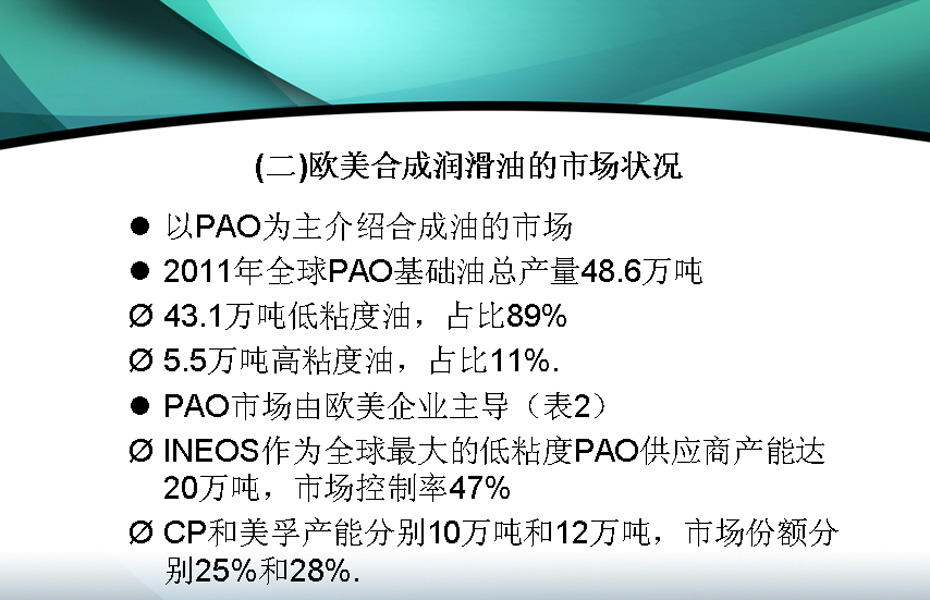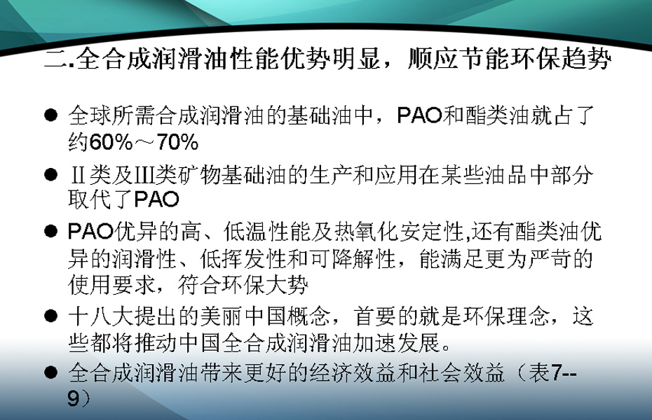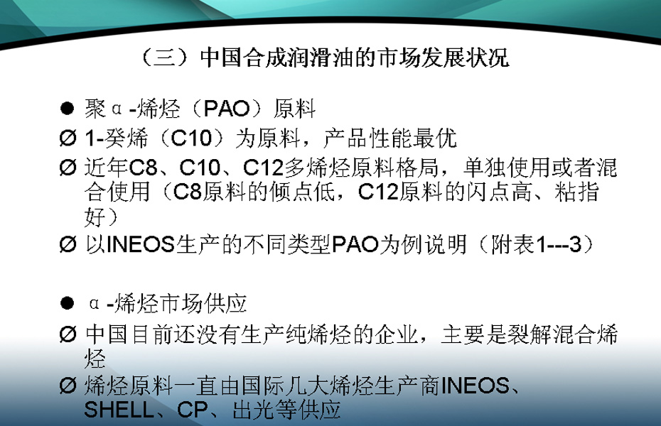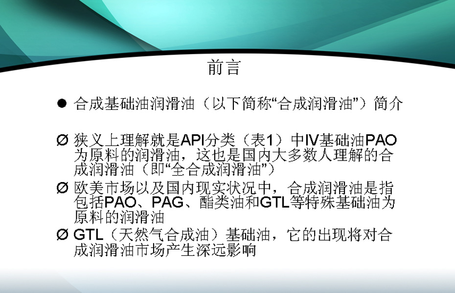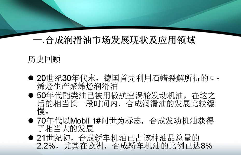 演讲题目:中国合成基础油润滑油市场现状及发展前景