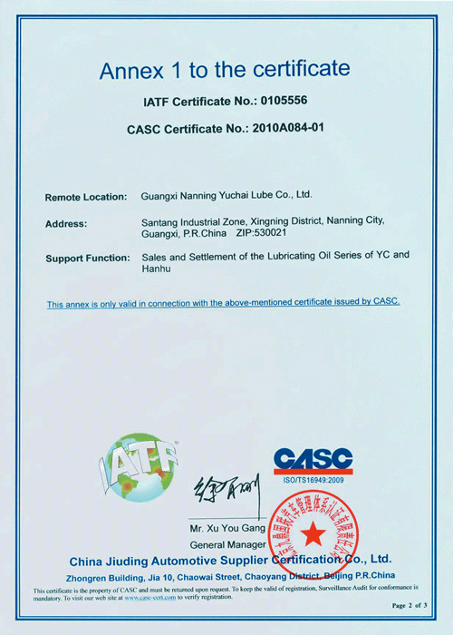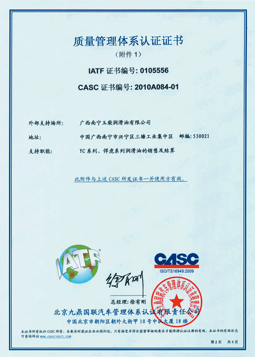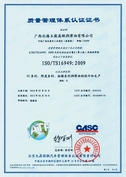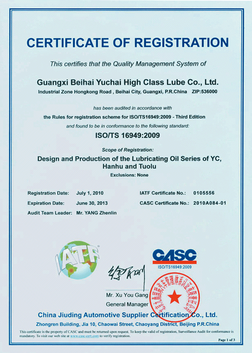 公司以“领先适用,长效可靠,绿色环保,至诚共赢”为质量方针,凭借业内领先的技术研发水平、调合工艺及优质稳定的原料供应渠道向用户提供高品质的润滑产品,不断满足用户多样化润滑需求。公司产品得到广大用户的广泛认可,目前公司已经通过ISO/TS 16949质量管理体系认证、ISO14000环境管理体系认证、OHSAS18000职业安全健康认证,公司产品通过了美国石油学会API的质量认证、Cummins(康明斯)认证、VOLVO(沃尔沃)认证、MAN(曼)认证等。